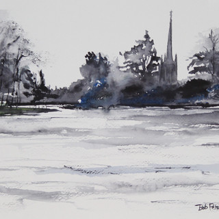 I was about to start painting when my wife needed a lift to the doctors. As it looked like I was in for a bit of a wait I grabbed an 8b pencil and a sketchbook to pass the time sitting in the surgery car park. I found this scene on my phone and knocked out a very quick sketch of a view along the River Avon in Stratford. Once again, proving a theory that sometimes a ten minute sketch can produce something good even though I say so myself!